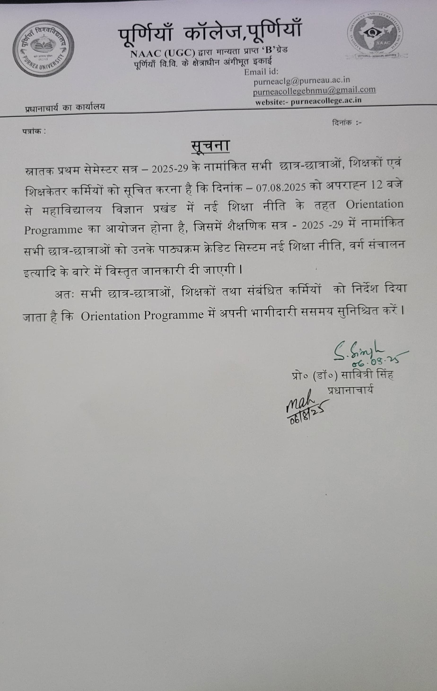 NOTICE REGARDING ORIENTATION PROGRAMME
